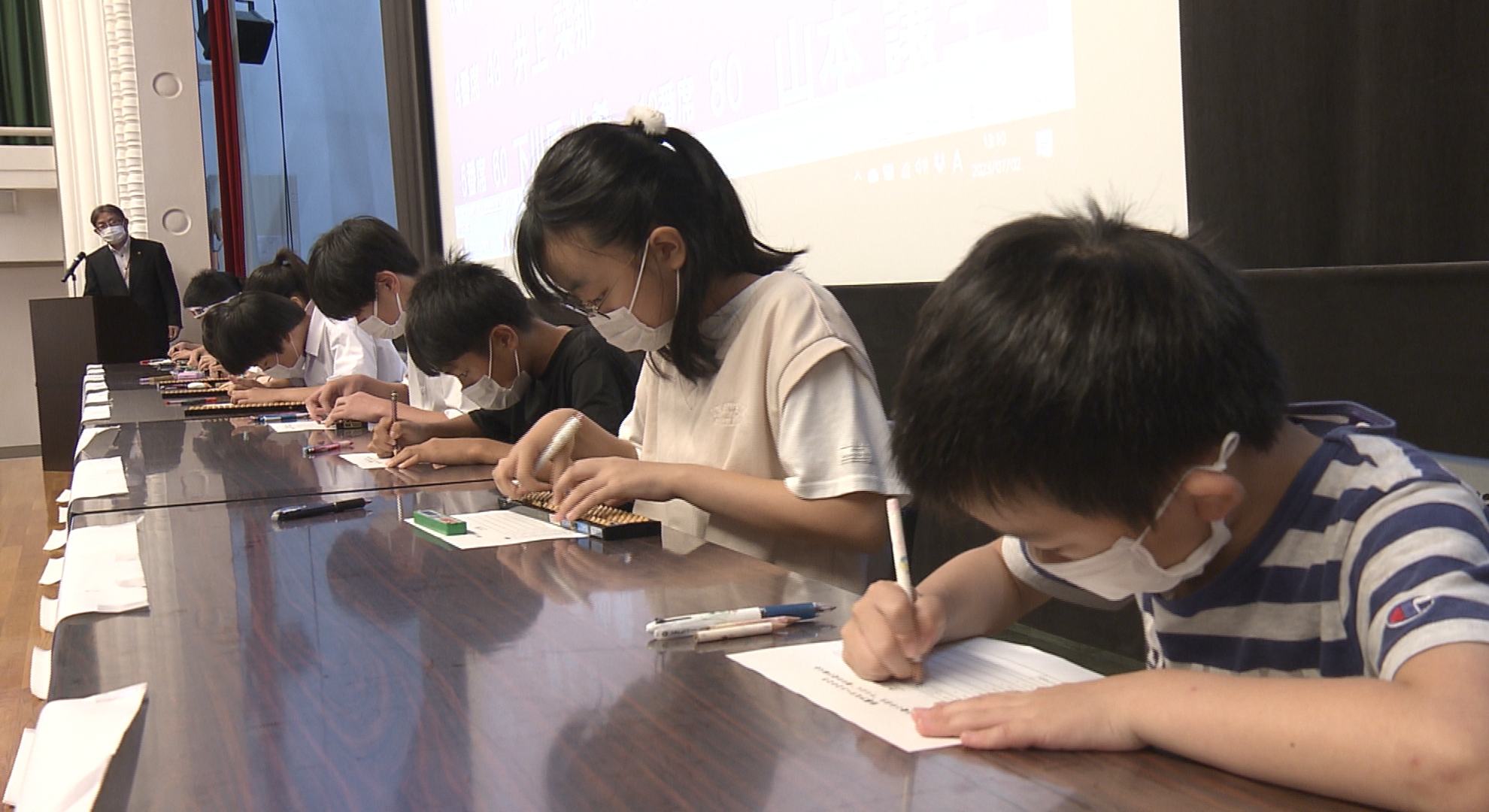 2023年は、近畿地区の小中学生、それに、夏休みを利用して来日したブラジルの中学生2人を合わせた約80人が参加。 掛け算、割り算、読み上げ算など6つの種目でそれぞれ予選を行い、上位10人による決勝で優勝を争います。