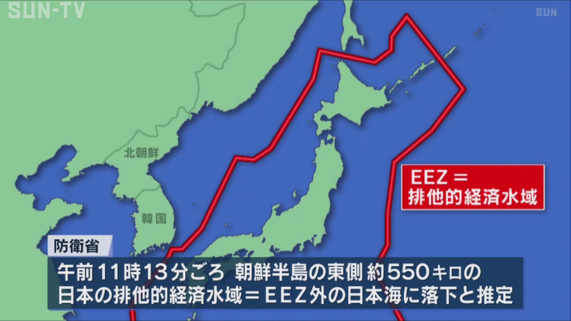 北朝鮮が弾道ミサイル発射 既にEEZ外に落下とみられる 2023.07.1216:22 事件・事故 防衛省は北朝鮮が7月12日、弾道ミサイルを発射したと発表し、海上保安庁は防衛省からの情報としてすでに落下したとみられると明らかにしました。 防衛省によりますと弾道ミサイルは午前9時59分ごろ北朝鮮内陸部から少なくとも1発発射されました。 推定では、午前11時13分ごろに朝鮮半島の東側およそ550キロの日本の排他的経済水域=EEZ外の日本海に落下するとされていました。 北朝鮮の弾道ミサイルの発射は6月15日以来です。 #ミサイル #北朝鮮 記事のギャラリーを見る ニュース一覧へ戻る