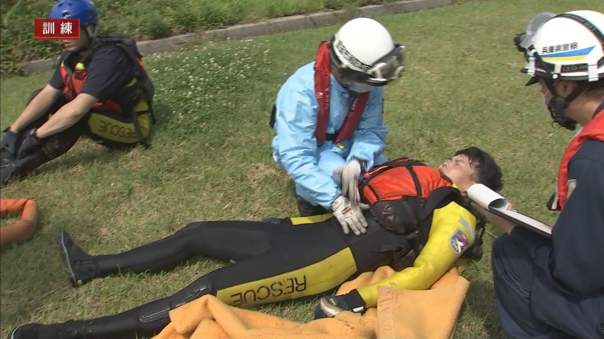 消防や警察などによる合同の水難救助訓練