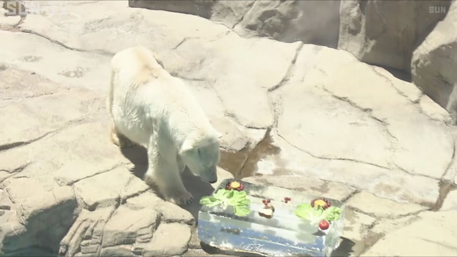 厳しい暑さが続くなか、兵庫県神戸市灘区の王子動物園では、ホッキョクグマに冷たい氷がプレゼントされました。