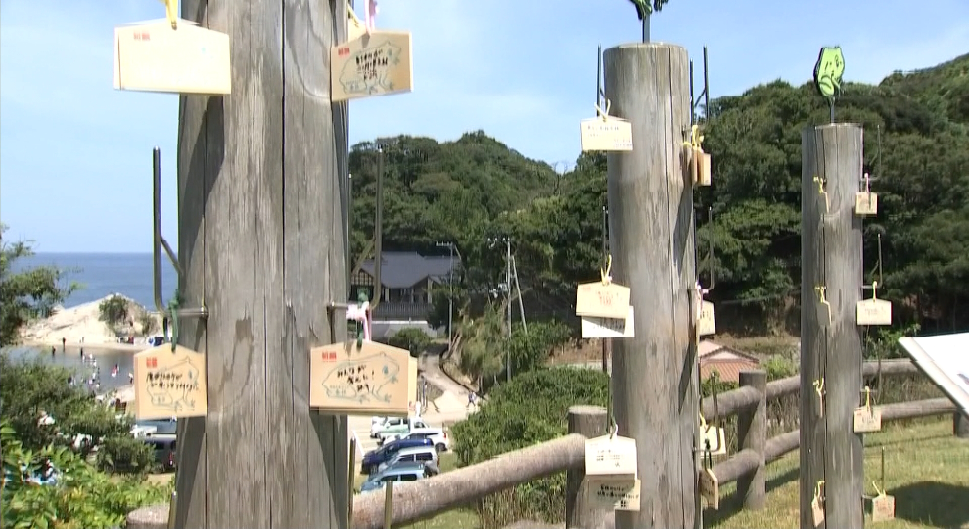 かつて北前船が港を出る時に、無事に「帰る」ように祈ったという言い伝えから、地元では観光客にも無事に帰ってもらおうと、絵馬を奉納する祈願祭をこの時期に行っています。