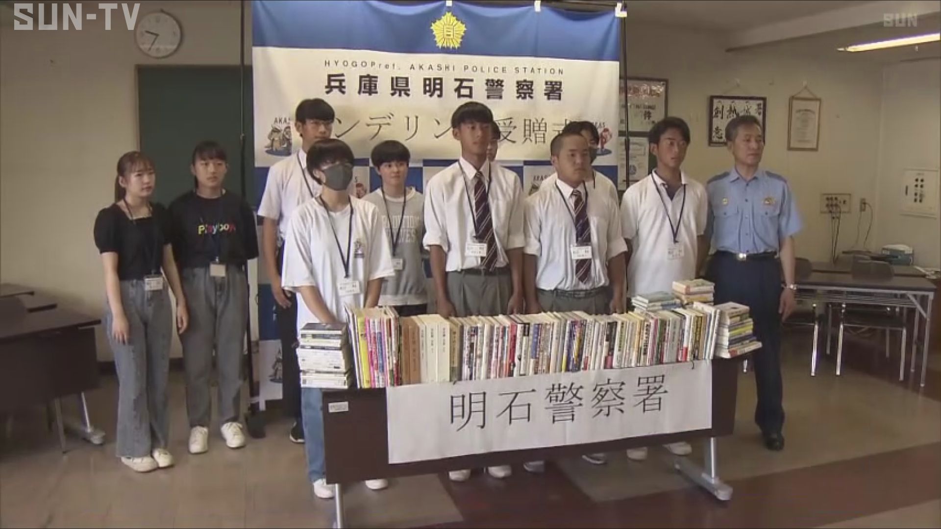 7月25日は、取り組みに賛同した市内の高校生たちが明石警察署を訪れ、持ち寄った本や漫画を寄贈しました。