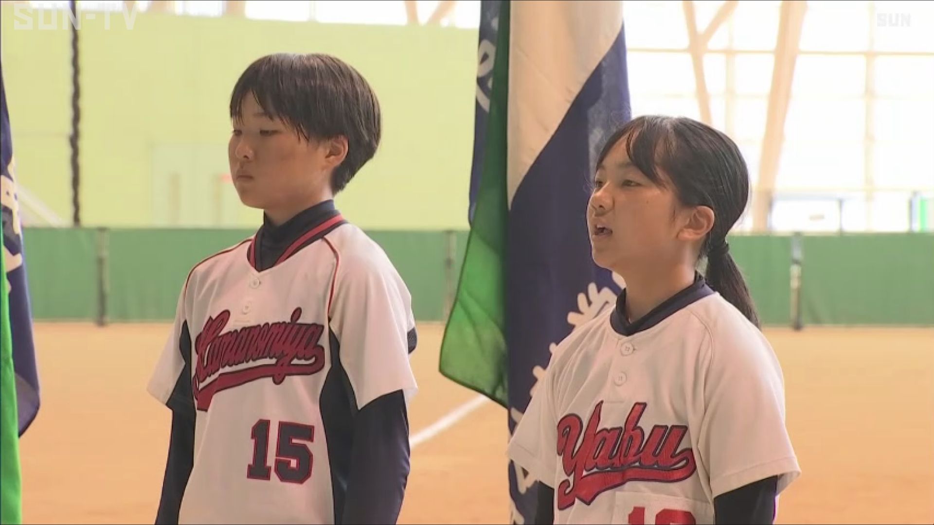 開会式では、加古川市の浜の宮中学校ソフトボール部の永田彩友佳選手と養父中学校ソフトボール部の安東芽里選手が選手宣誓しました。