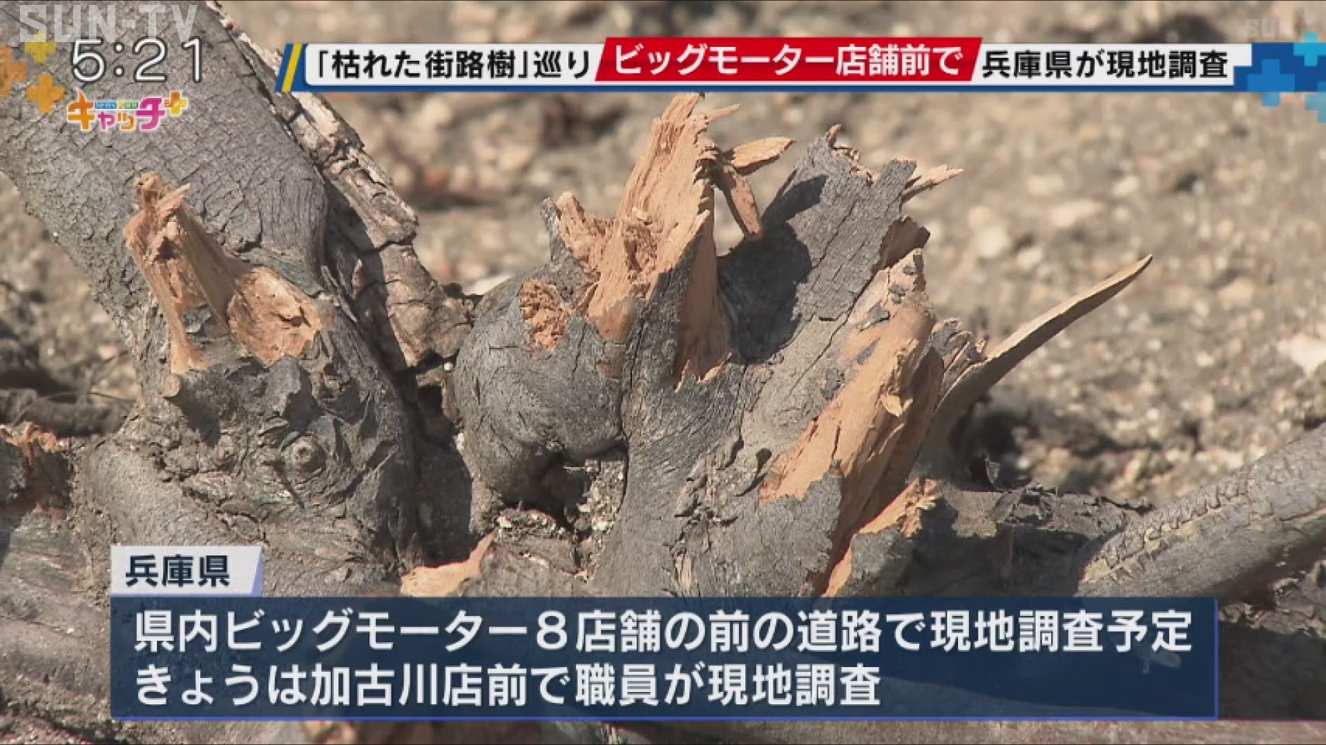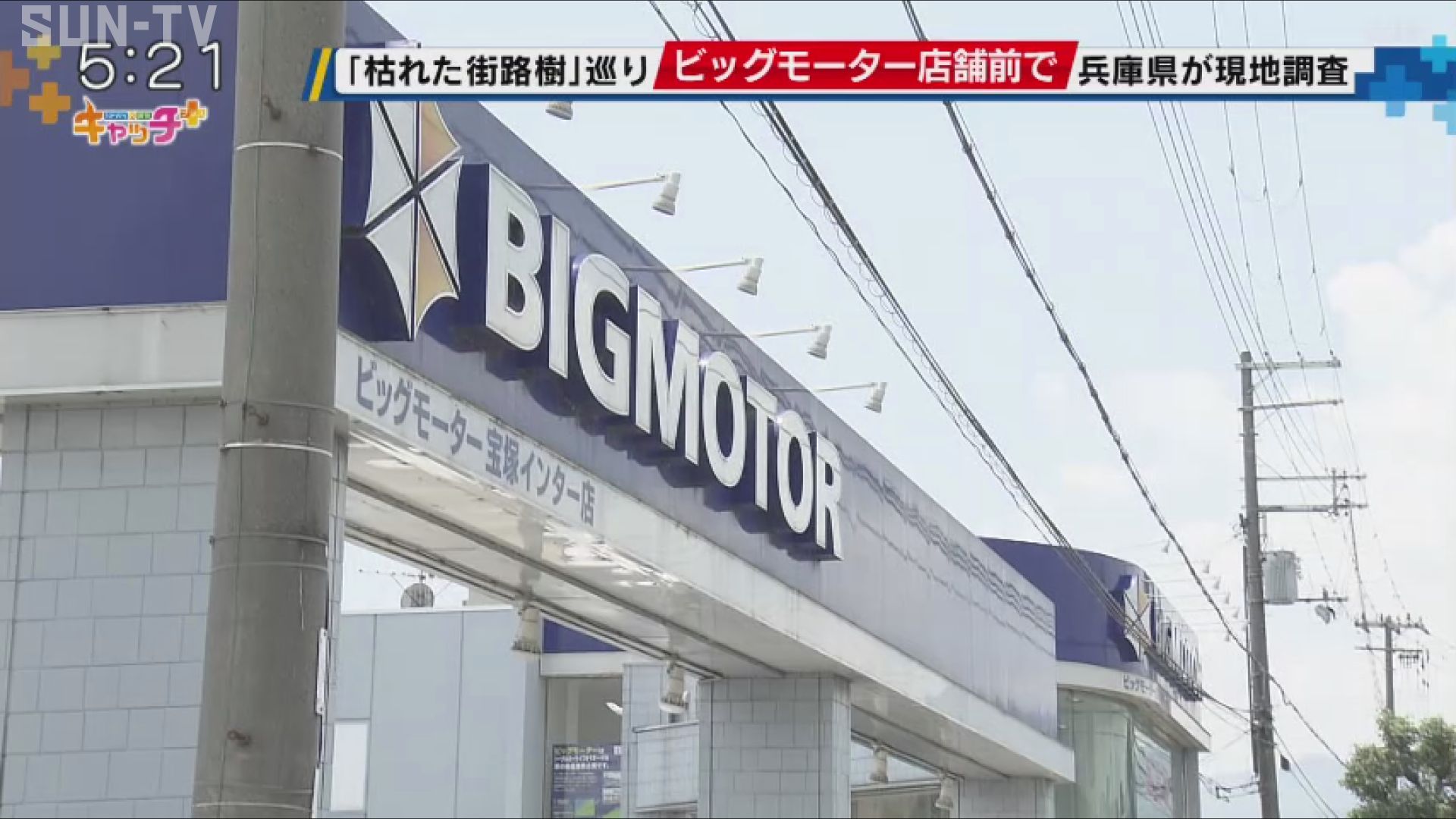 ビッグモーターの店の前にある街路樹が不自然に枯れるなどしている問題。宝塚インター店では2018年11月に県の職員がクスノキ6本が立ち枯れしているのを見つけ、倒木の危険性があるとして伐採したということです。