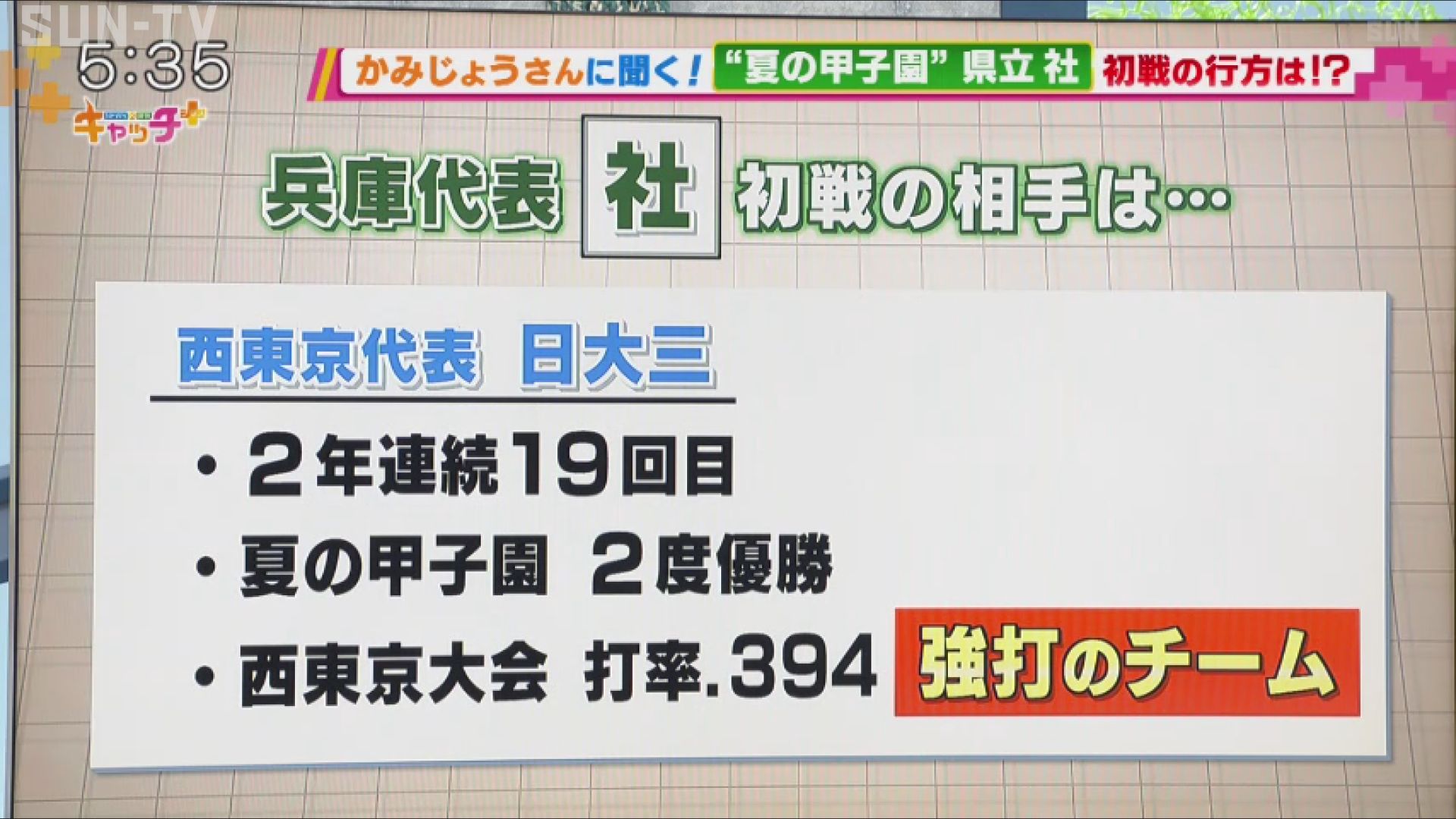 兵庫大会を勝ち抜き、夏の甲子園に2年連続での出場を決めた兵庫県立社高校。初戦の展望を高校野球大好き芸人・かみじょうたけしさんに聞いていきます。
