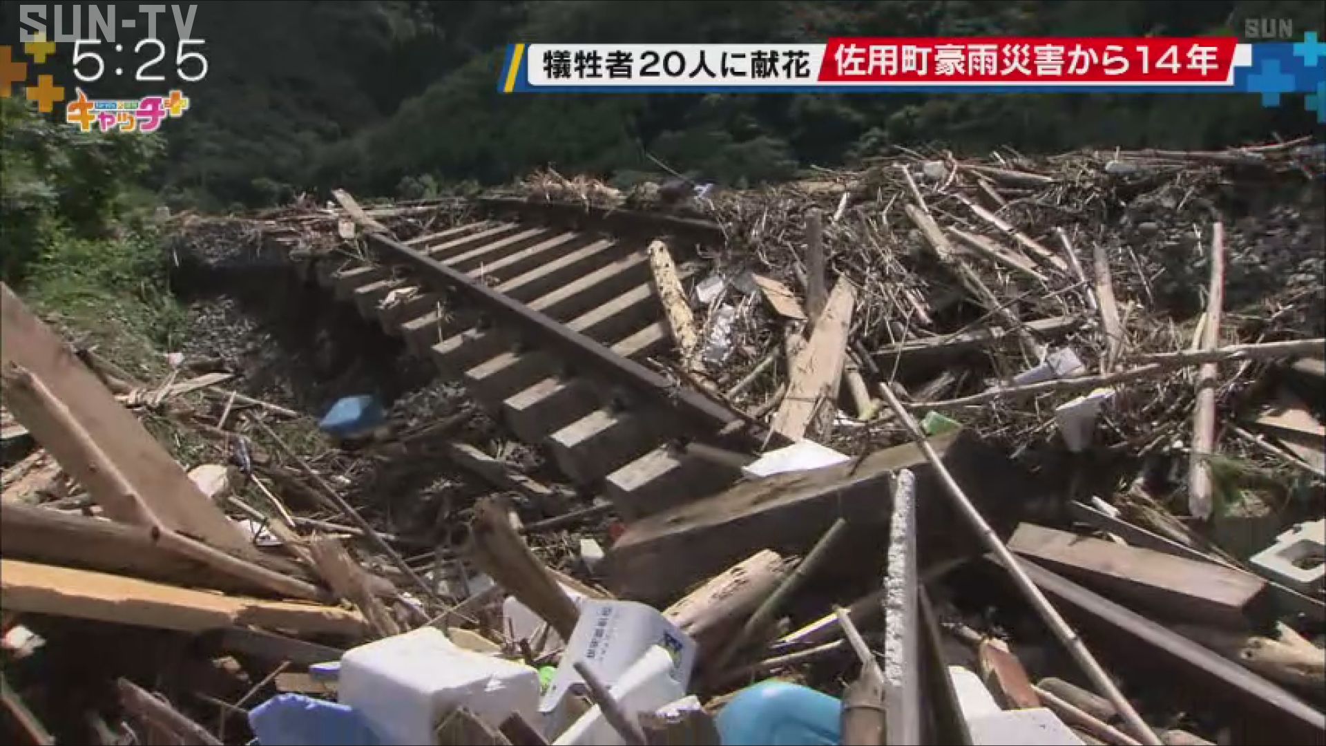 兵庫県佐用町で20人が犠牲となった豪雨災害から9日で丸14年を迎え、遺族らが献花台に花を手向けて犠牲者を追悼しました。