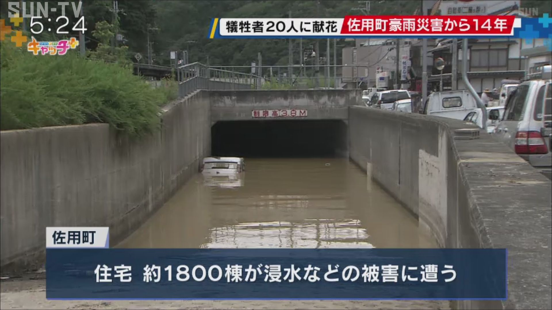2009年8月、佐用町では台風の影響で大雨が降り、河川が氾濫して18人が死亡、2人が行方不明となり、住宅およそ1800棟が浸水などの被害に遭いました。