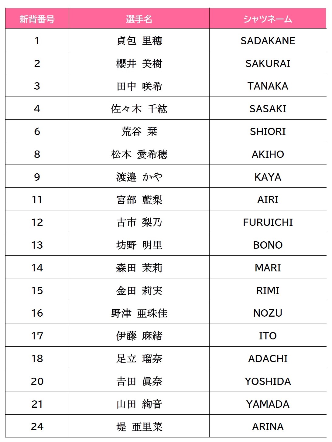 同日、ヴィクトリーナ姫路は選手の新しい背番号を発表した。
