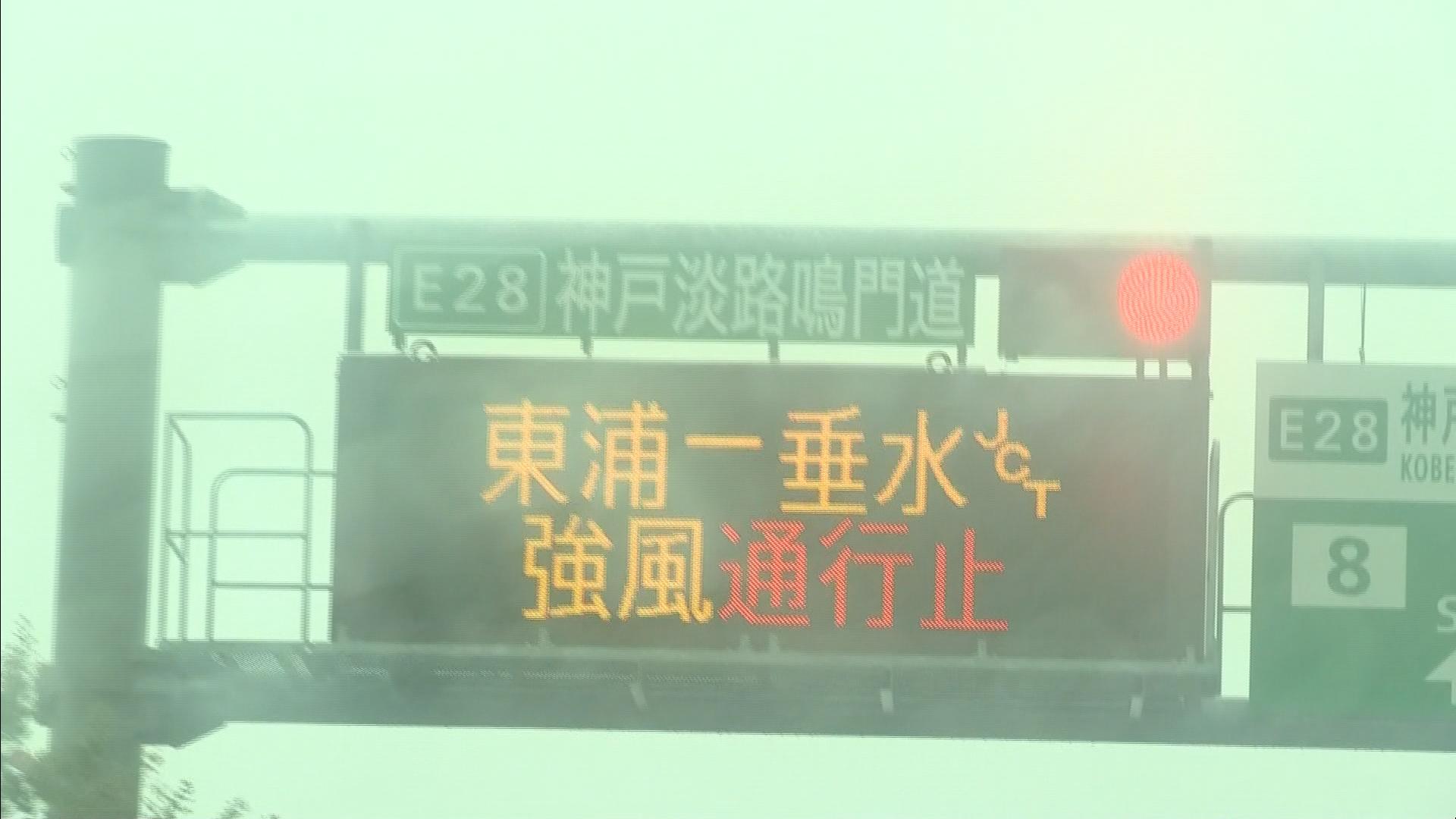 一方、神戸淡路鳴門自動車道は、強風のため、洲本から鳴門の上下線と布施畑から東浦の下り線、垂水から東浦の上り線で通行止めとなっています。