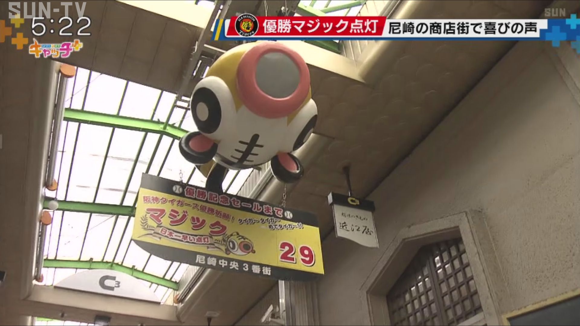 プロ野球・セリーグで首位を独走する阪神タイガースに、16日、優勝へのマジックナンバーが初点灯し、「日本一早いマジック点灯」で知られる商店街でも喜びの声が上がっています。