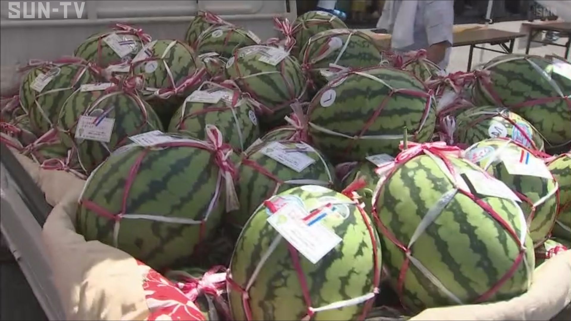 また、採れたてのスイカが数量限定で市場よりも安く販売され、多くの人が買い求めていました。