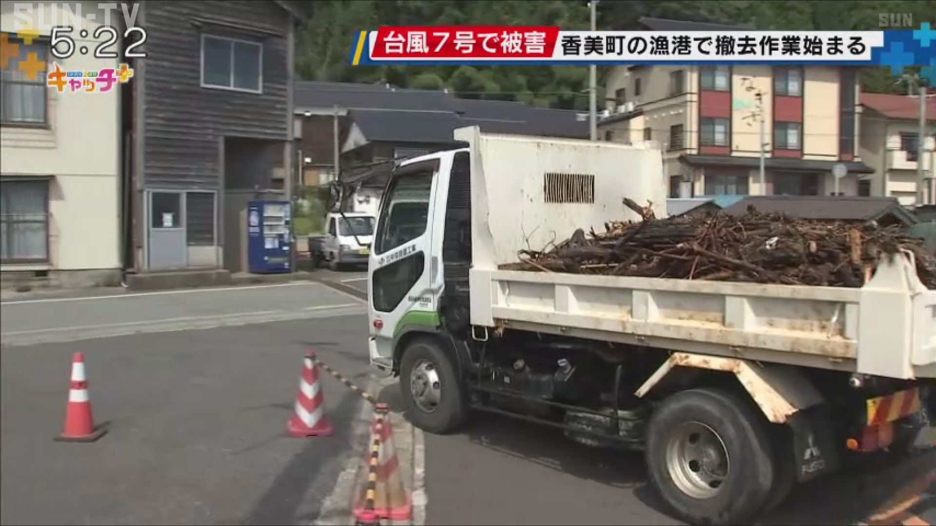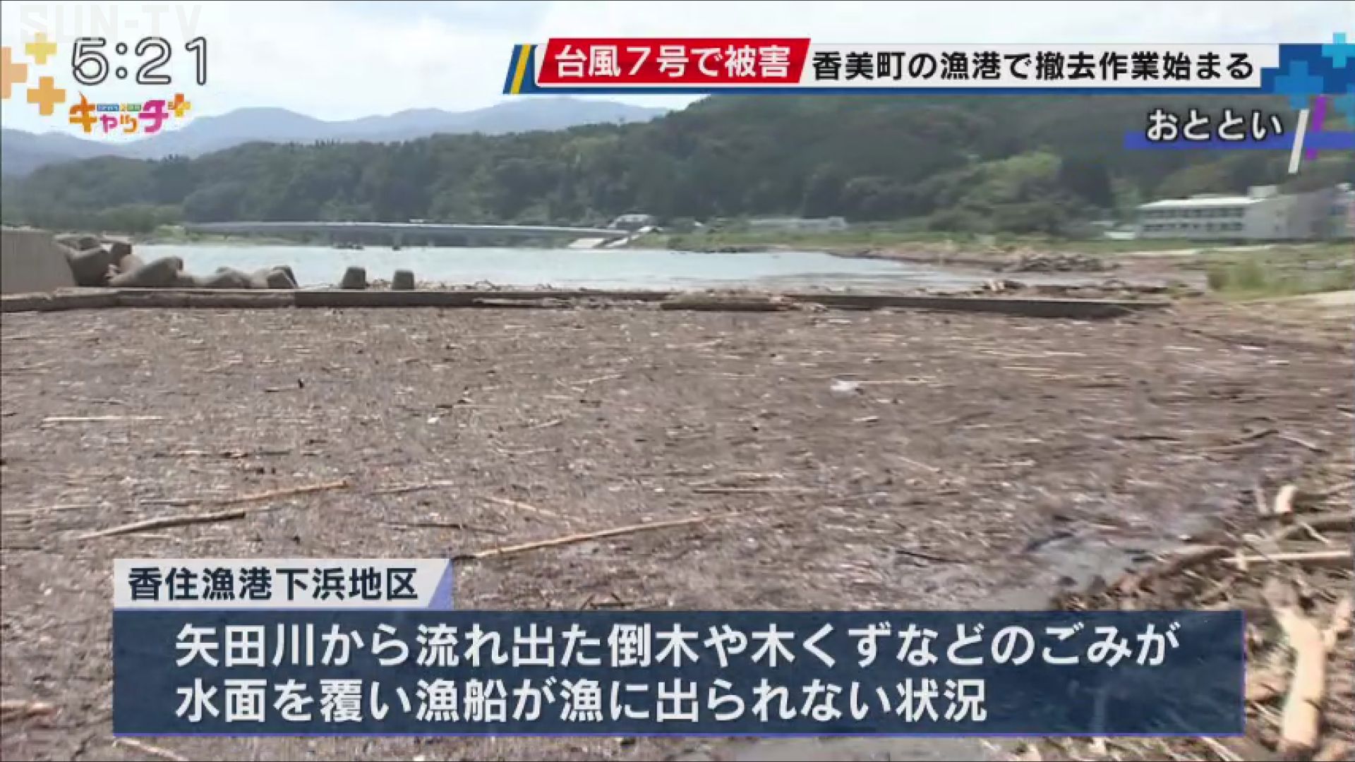 台風7号の影響で大量の倒木などが流れ込んだ兵庫県香美町の漁港で、21日から撤去作業が始まりました。