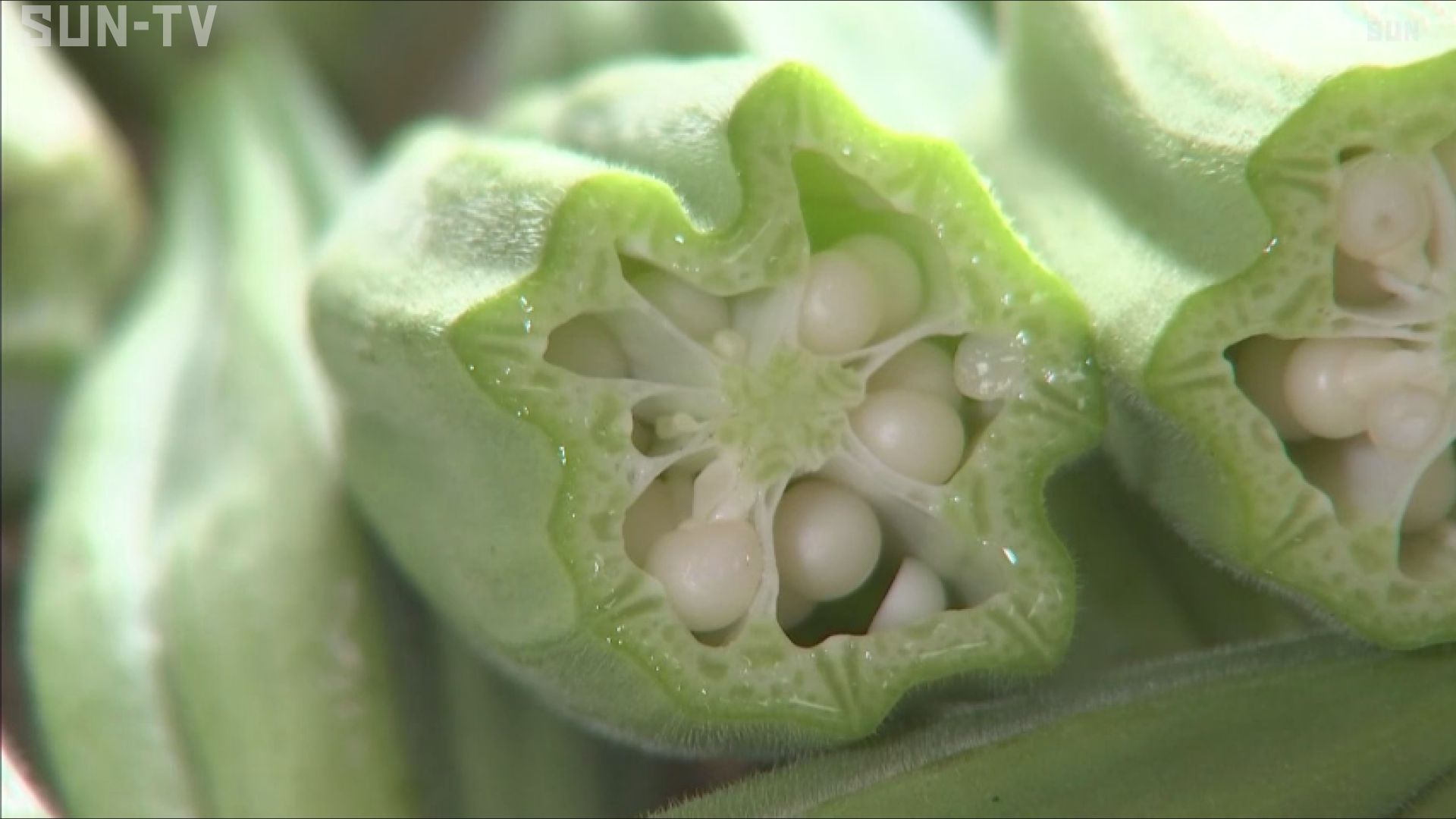 豊岡市日高町では、一般的なオクラより太くて大きい、「八代オクラ」の収穫が最盛期を迎えています。