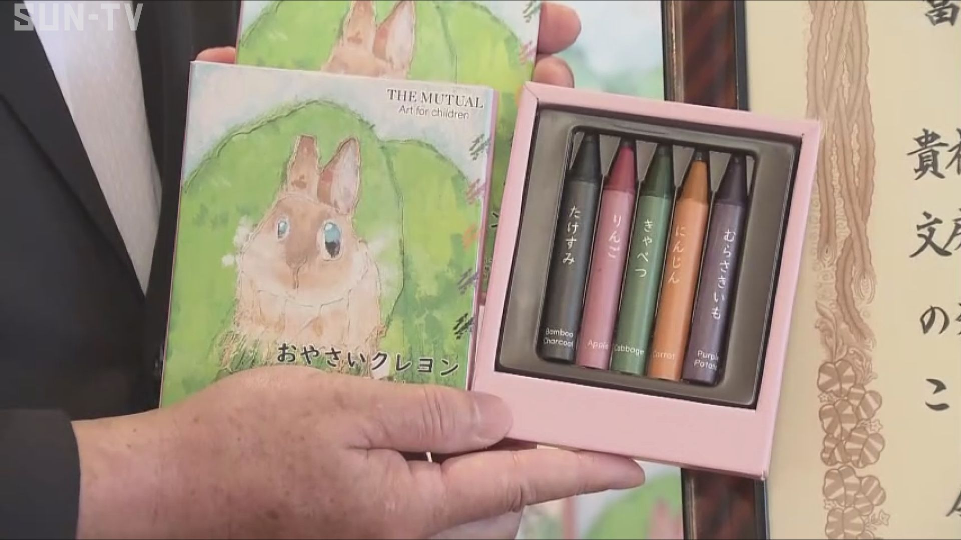 保険会社大手フコク生命の神戸支社から神戸市に贈られたのは、収穫の際に捨てられる野菜の葉などを使って作られたクレヨン1000セットです。