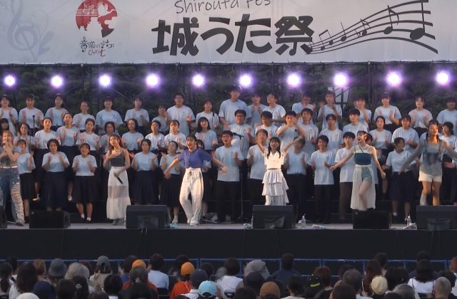 国宝・姫路城の三の丸広場では、世界遺産登録30周年を祝う「城うた祭」が開催され、市内の中学校と高校の合唱部が歌声を披露しました。