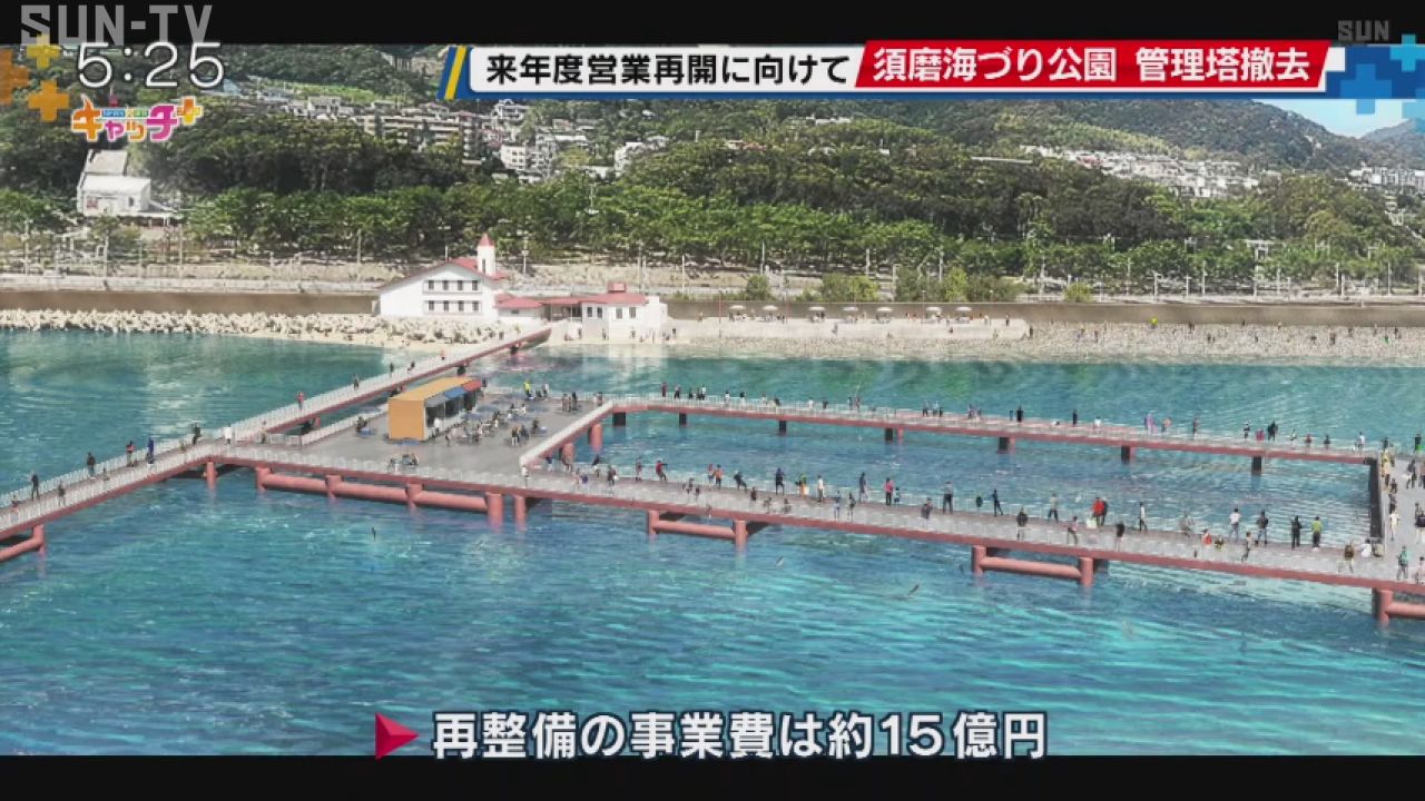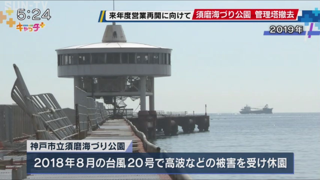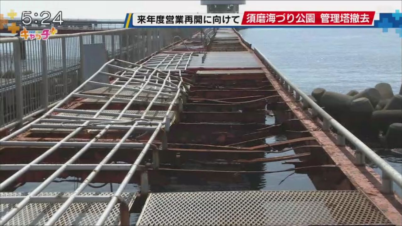 来年度の営業再開に向け、再整備工事が続いている神戸市の須磨海づり公園で、管理塔の撤去が行われました。