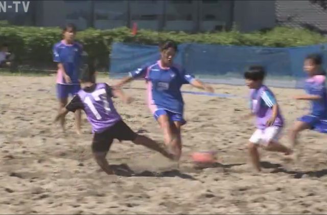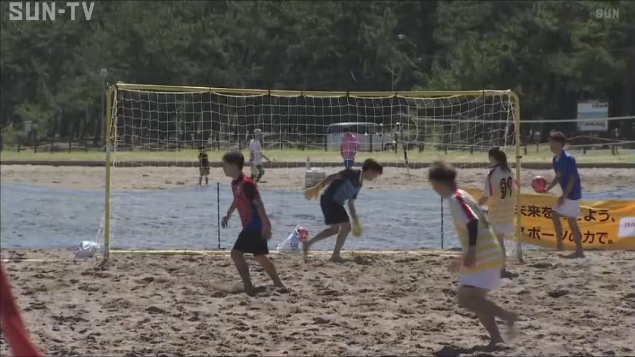 強い日差しが照りつける中、美しい海岸を選定した「日本の白砂青松100選」に選ばれている兵庫県新温泉町の「浜坂県民サンビーチ」にサッカー好きが集まりました。