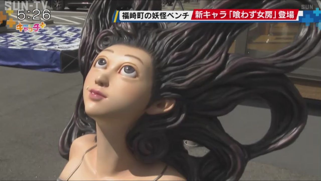 妖怪を生かしたまちづくりを進めている兵庫県福崎町で、「喰わず女房」の新しい妖怪ベンチが完成し、29日、お披露目されました。