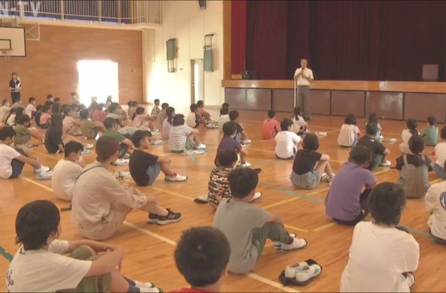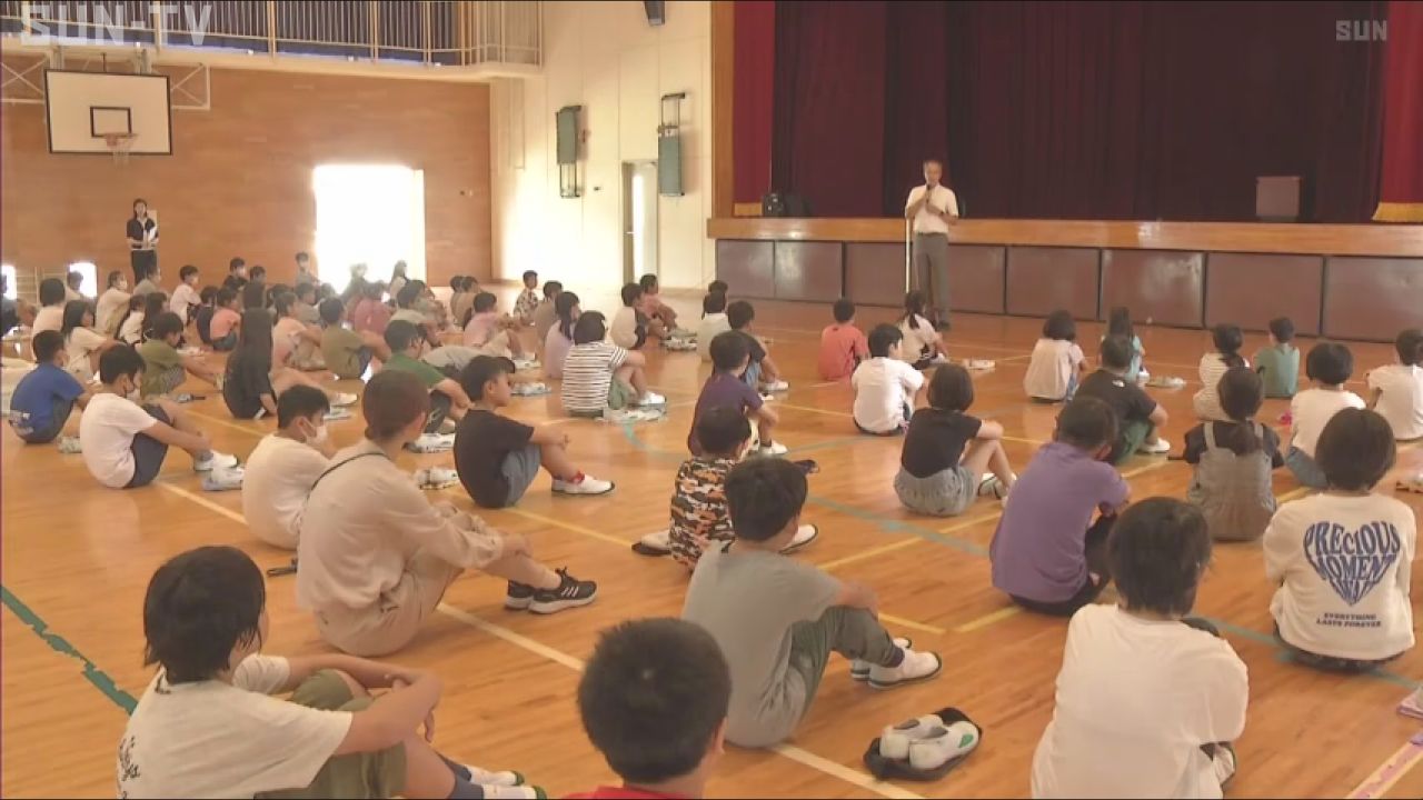 このうち、洲本市の市立洲本第一小学校では、夏休みを終えた全校児童88人が、体育館に集いました。