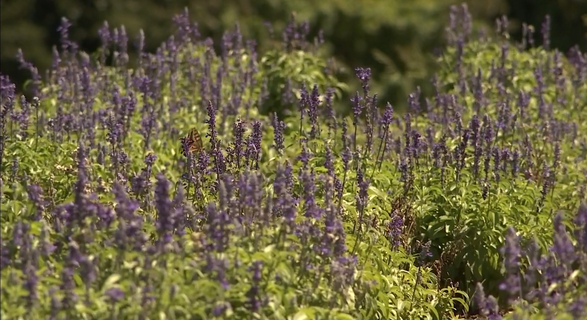 鮮やかな青色、そして甘い香りに誘われて、チョウがひらひらと舞っています。