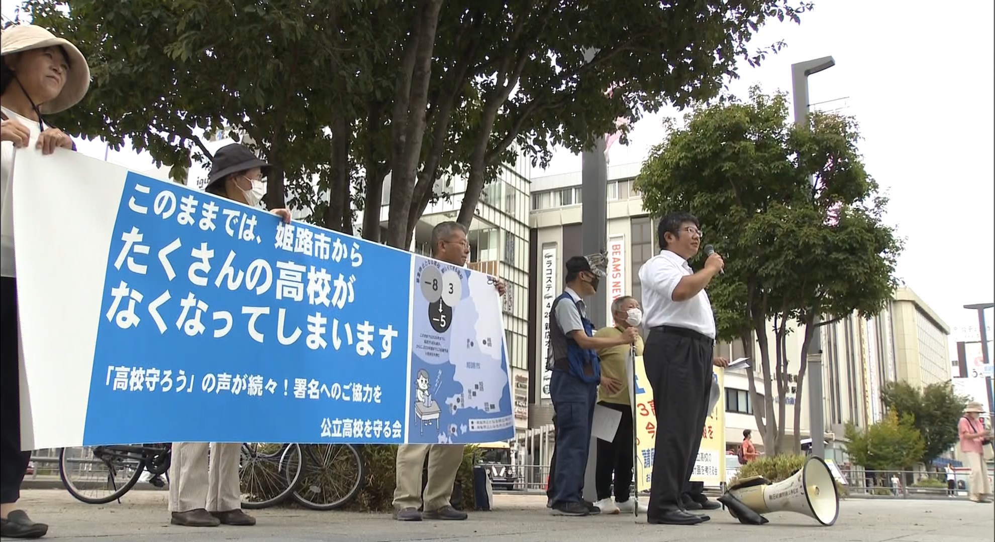 兵庫県の県立高校統合計画を巡り、教職員や保護者らでつくる団体が9月2日、計画の見直しを求める署名活動を姫路市で行いました。
