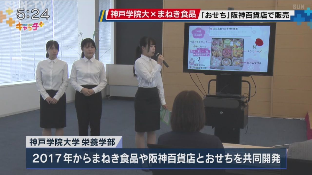 神戸学院大学の学生が食品メーカーや百貨店と共同開発したおせち料理が4日、お披露目されました。