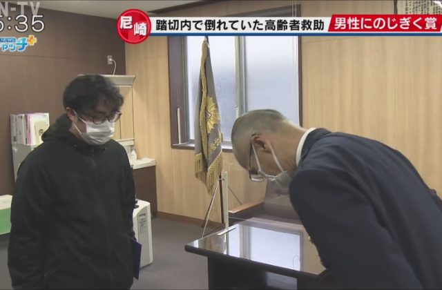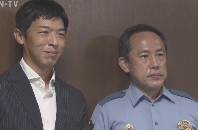 美方警察署の署長から、人命救助など身近ですぐれた善行をたたえる、「のじぎく賞」を贈呈されたのは、香美町香住区の会社員で消防団員でもある、奥谷康忠さんです。