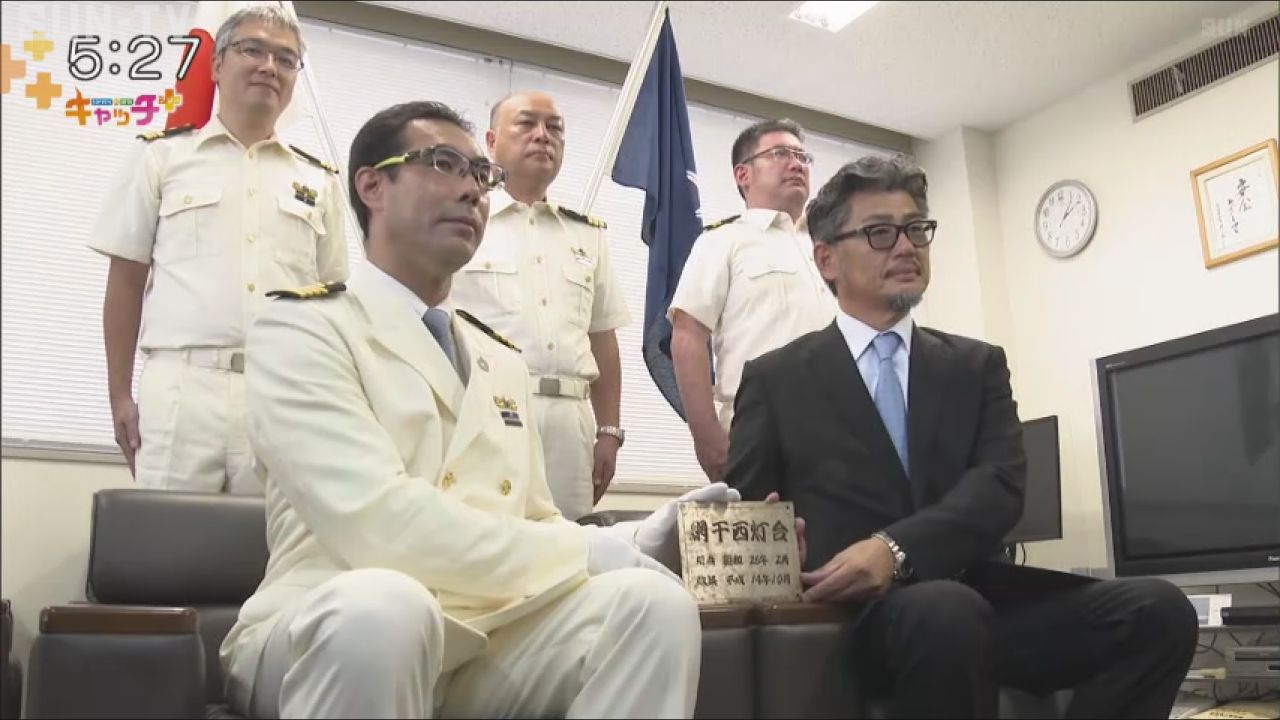 ところが、港湾施設の整備に伴って網干西灯台がことし7月3日に廃止されたため、漁協側が申請をして銘板を譲り受けることになり、6日、姫路海上保安部長から、姫路市漁協網干支所の梶原成郎支所長に引き渡されました。
