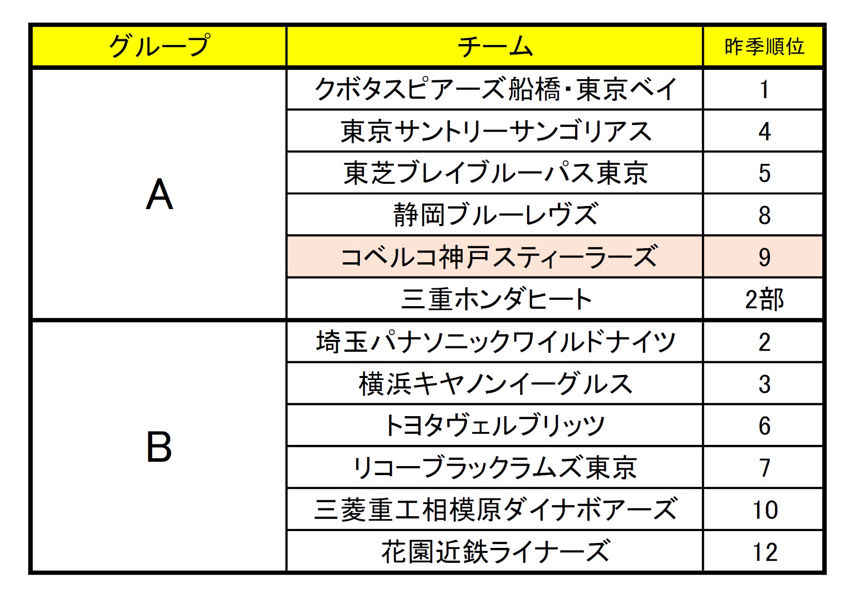 スティーラーズは昨シーズン優勝のクボタなどと共にAグループに振り分けられた。