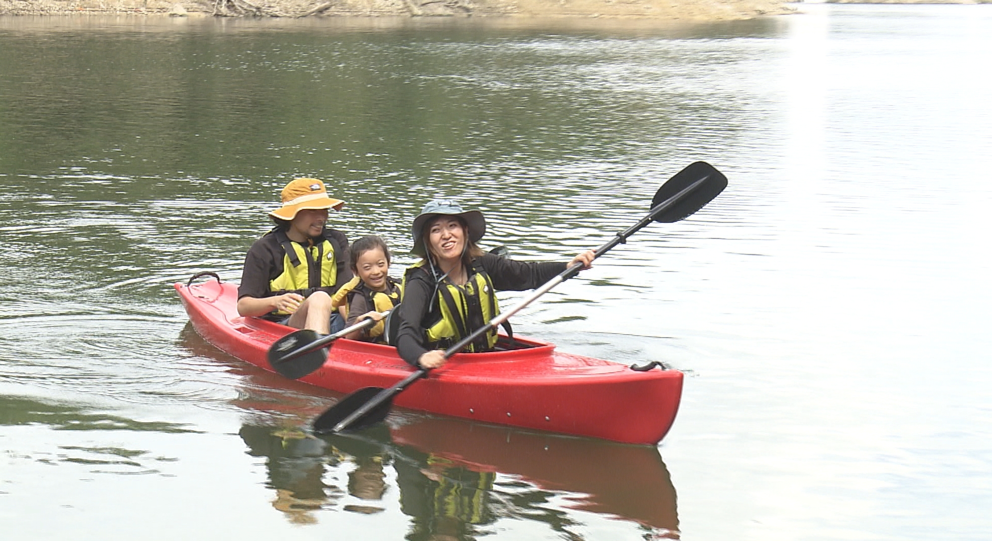 衝原湖には農林水産省が管理する呑吐ダムがあるため、通常、遊泳は禁止されていますが、今回は水上アクティビティの実証実験のために特別な許可を得て開放されました。