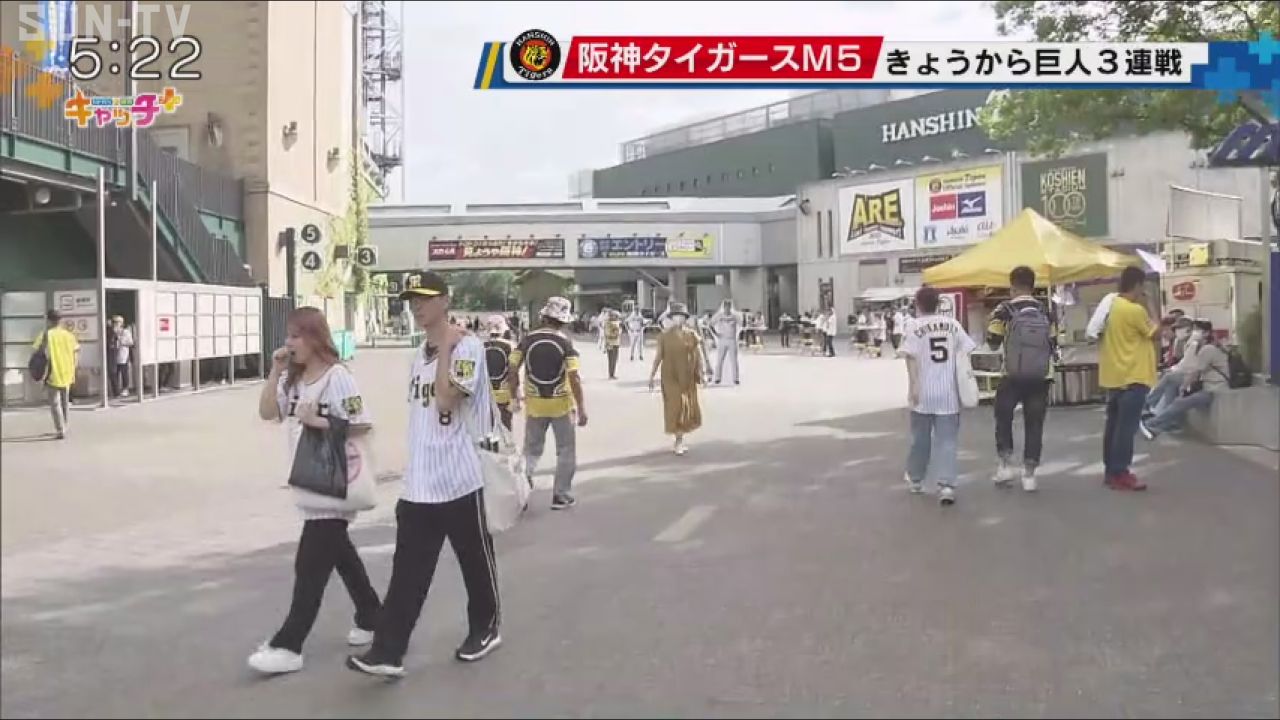 阪神タイガース M5でファンも「アレ」に期待 12日から甲子園で巨人3連戦 2023.09.1217:43 文化・スポーツ 優勝へのマジックを「5」としている阪神タイガースは、12日から本拠地・甲子園で巨人との3連戦に臨みます。 ファンは18年ぶりの「アレ」を待ちきれない様子です。 タイガースは9月8日から行われた2位広島との直接対決で3連勝し、優勝へのマジックナンバーを「5」まで減らしました。 12日から甲子園で巨人との3連戦に臨みますが、18年ぶりの「アレ」にファンの期待も最高潮です。 早ければあさって14日に、悲願の「アレ」の瞬間を迎えます。 #アレ #阪神タイガース 記事のギャラリーを見る ニュース一覧へ戻る
