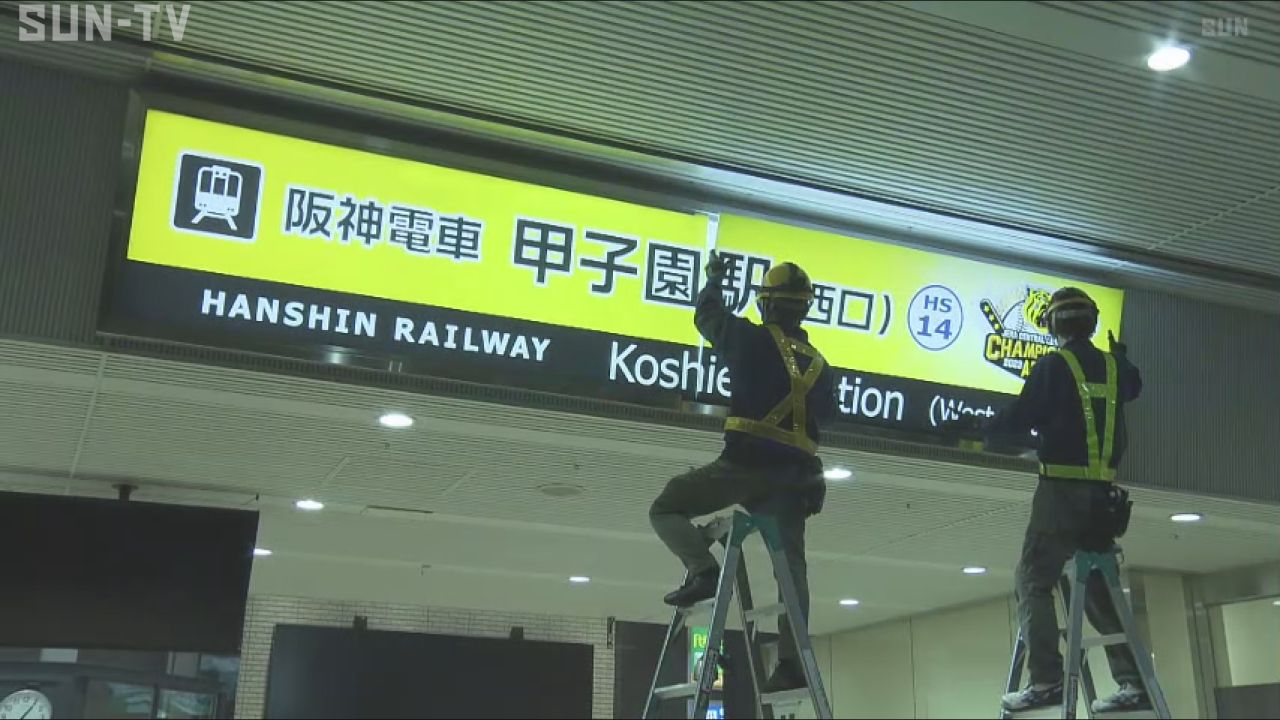 阪神電鉄甲子園駅の駅名看板が黒と黄色のタイガースカラーに 優勝記念版に衣替え