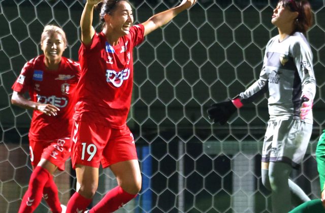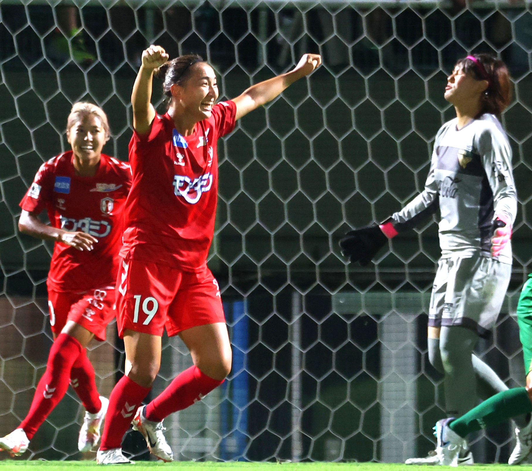 さらに6分後、コーナーキックからのこぼれ球を中央からルーキーMF林愛花が右足で押し込み、WEリーグ初得点を挙げた。