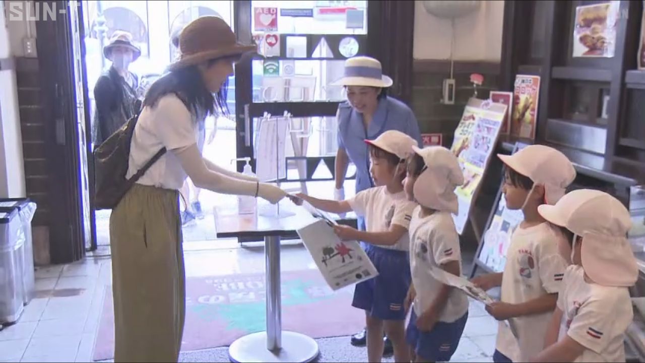 園児たちは訪れた人たちに配り、交通安全を呼び掛けていました。