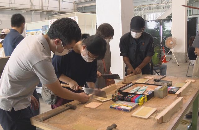 会場では、シミュレーターを使った溶接作業の他、木を使ったストラップ作りも体験でき、子どもたちは、ものづくりの楽しさを感じていました。