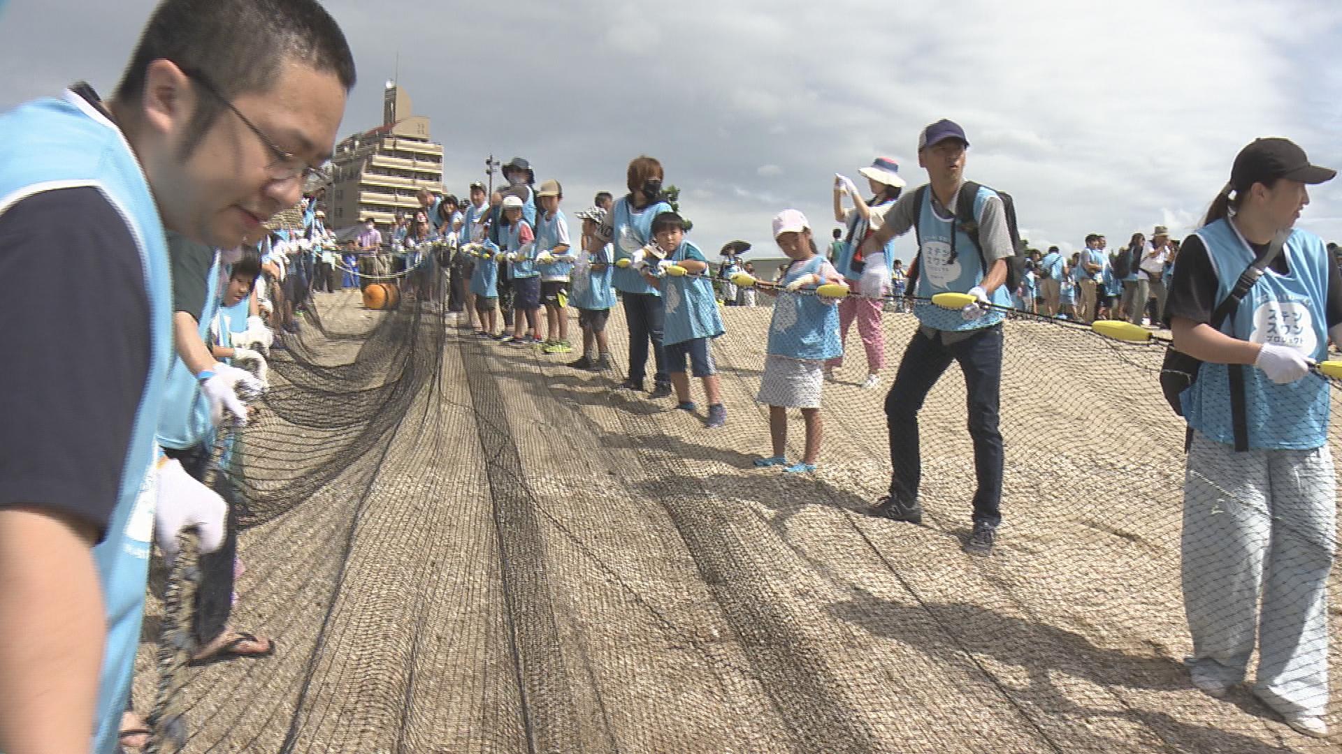 兵庫県神戸市の須磨海岸では9月23日に、地引き網漁の体験会が開かれ、参加した子どもたちが、須磨の海の生き物と触れ合いました。