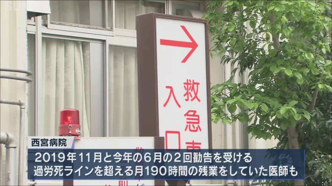 県病院局によりますと、西宮病院では2019年11月と今年の6月の2回にわたって勧告を受けており、月100時間の「過労死ライン」の2倍に近い月190時間の残業をしていた医師もいたということです。