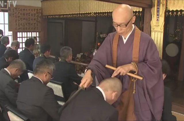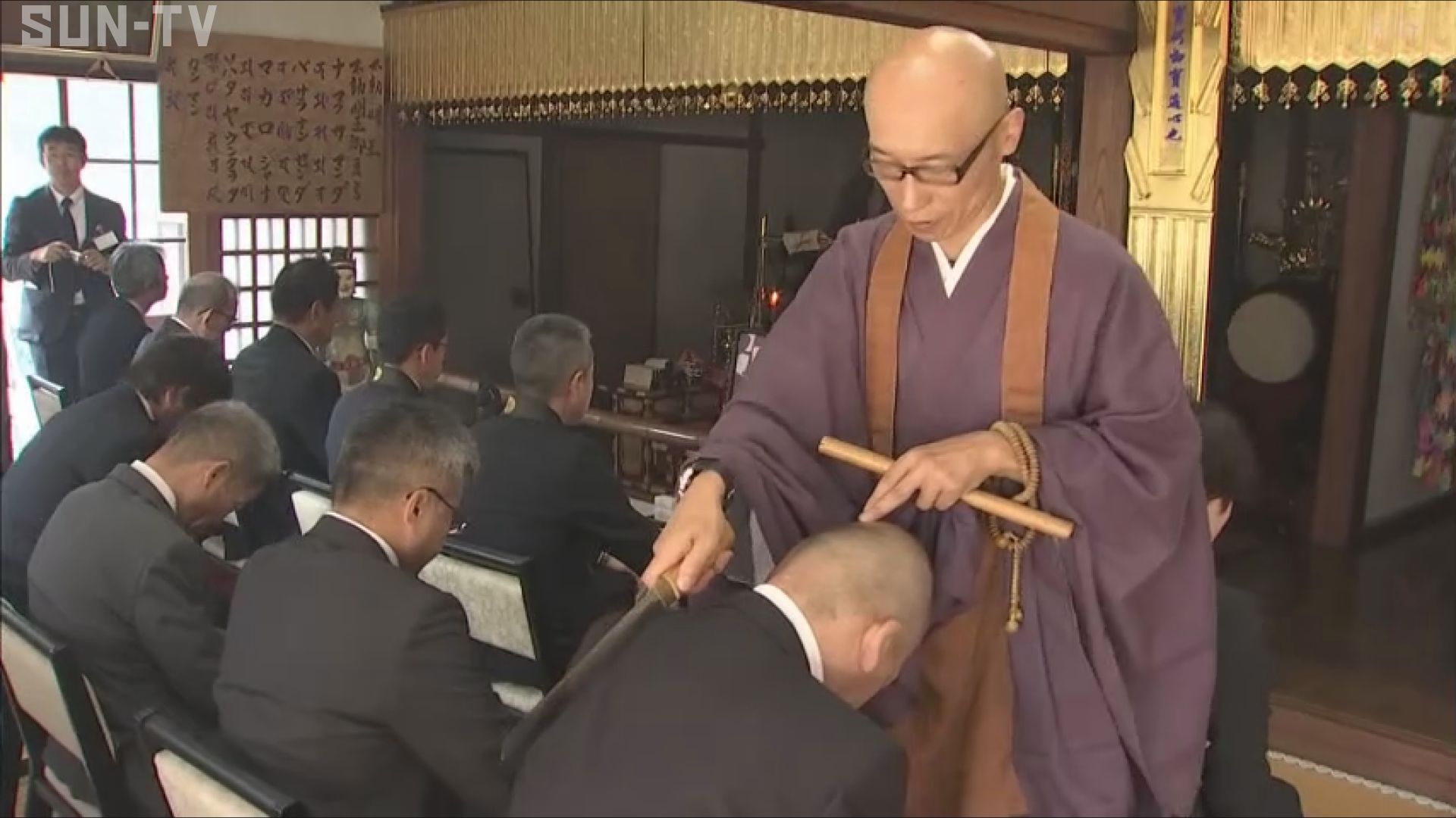 出席した杜氏たちは、読経の後におはらいを受け、良い日本酒の醸造と酒蔵での作業の安全を祈願しました。