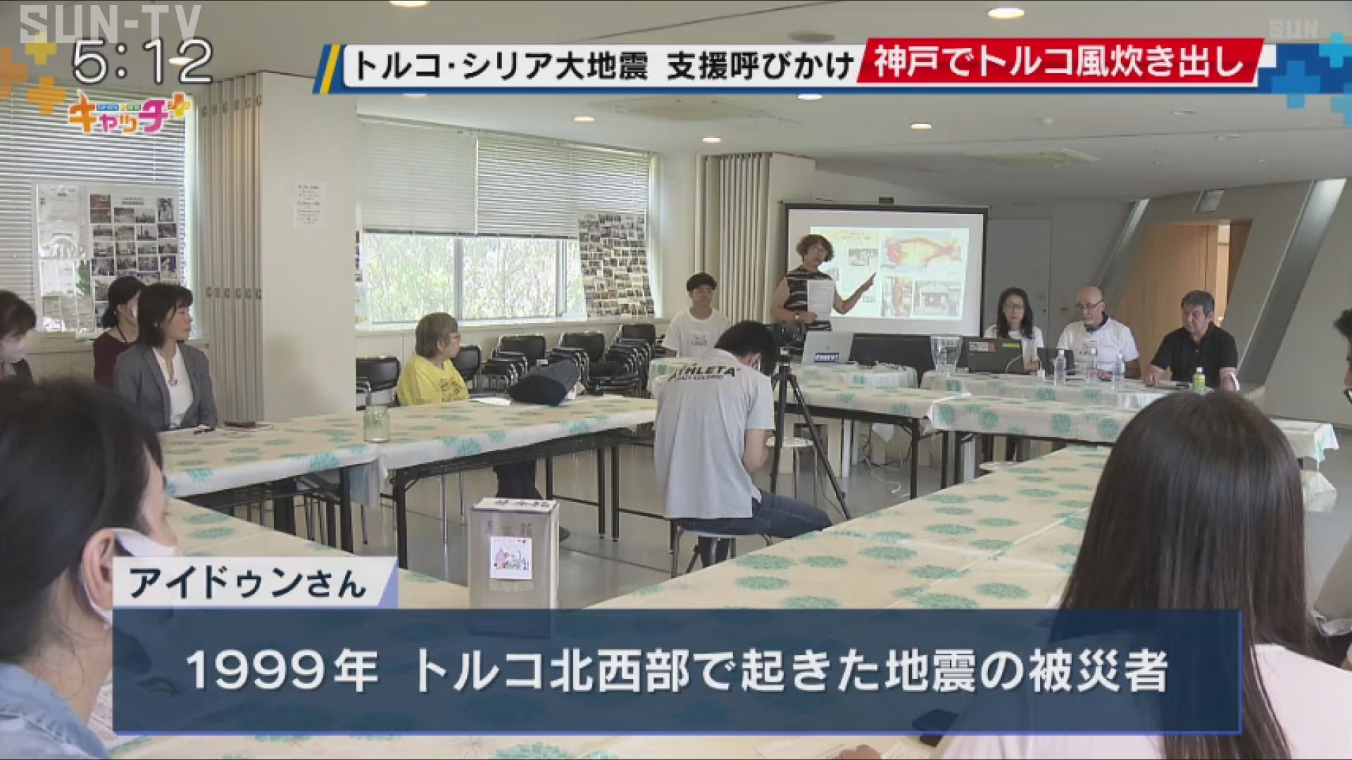 アイドゥンさんは、1999年にトルコ北西部で起きた地震の被災者で水とパンを求めていたことや神戸の消防が駆けつけてくれた経験を語り、ことし2月に起きた地震で被害の大きかったハタイ地域などへの支援を呼びかけました。