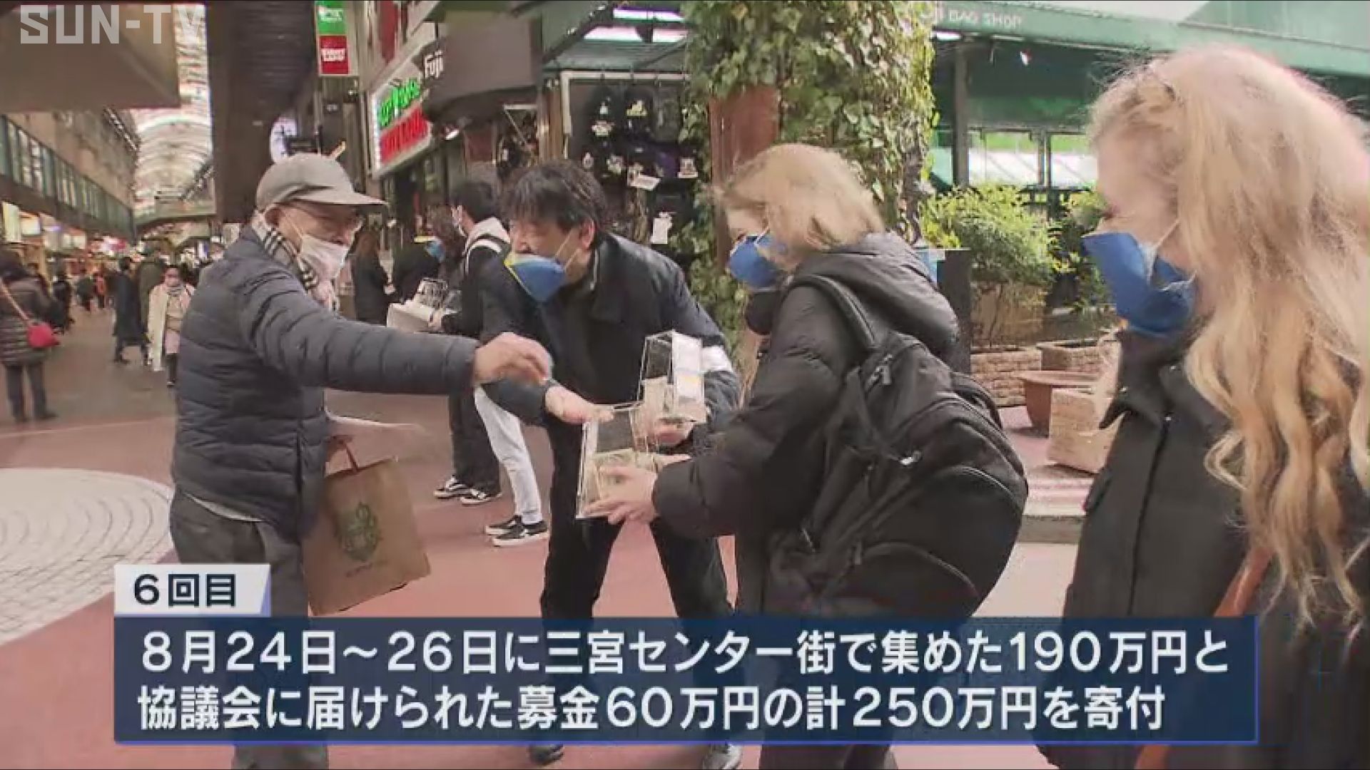 6回目となる今回は、8月24日から26日に三宮センター街で集めた190万円と協議会に届けられた募金60万円の合わせて250万円を寄付。