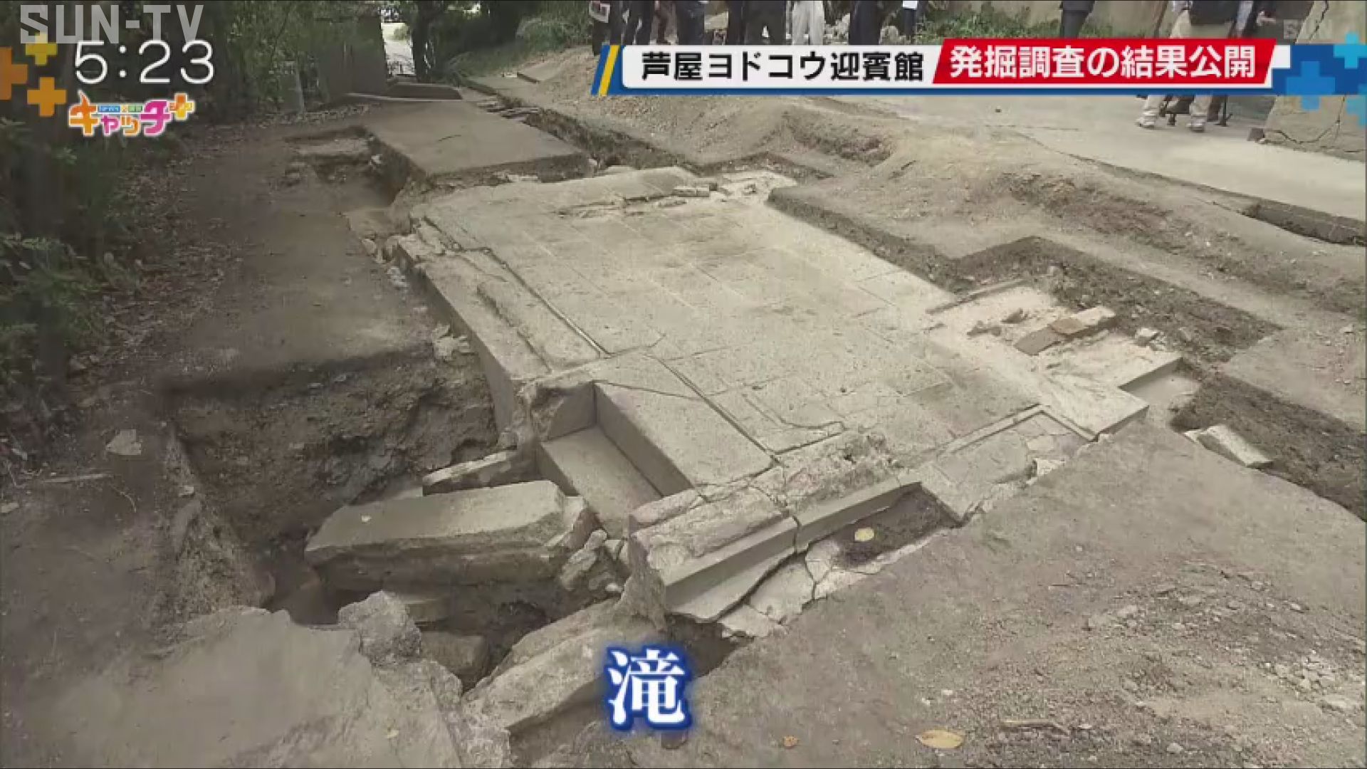 今回の調査では、迎賓館の東側の発掘が行われ、滝や池、渡り廊下などの他、当時、資料庫として使われた幻の温室跡も新たに発見。