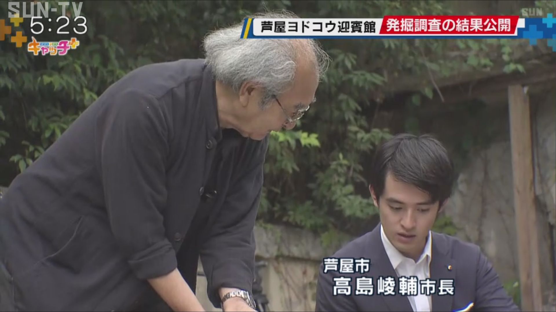 10月3日の現地説明会には芦屋市の高島崚輔市長も視察に訪れ、図面と遺構を見比べながら熱心に見学していました。