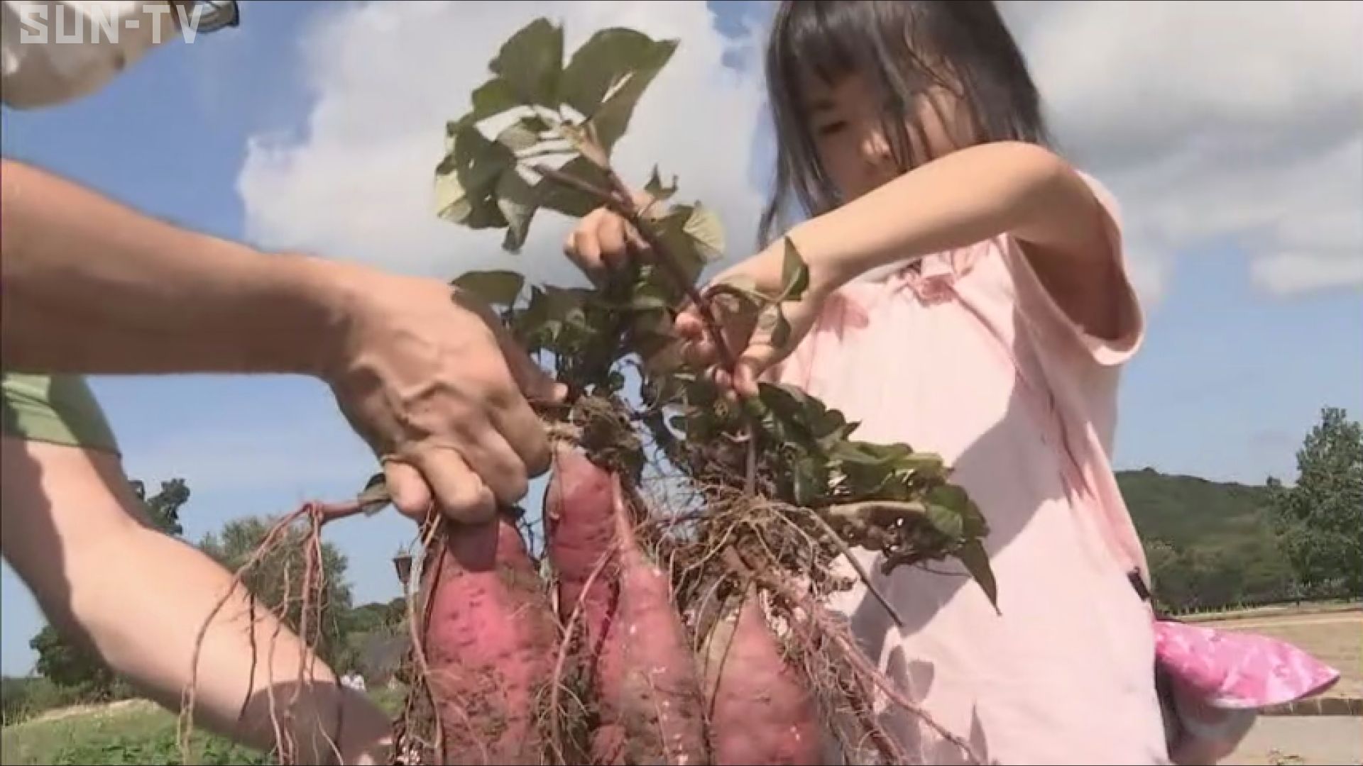 農作物の収穫体験が楽しめる南あわじ市の農業公園では、秋の味覚「サツマイモ」の収穫体験が始まっています。