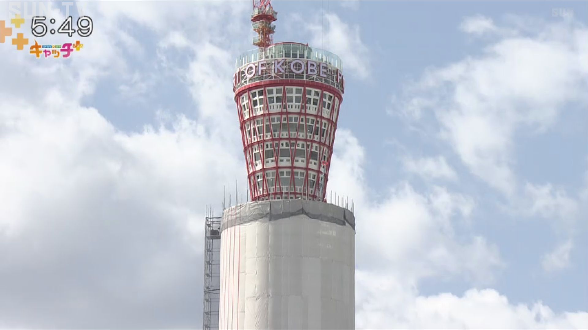 現在改修工事が進められている港町・神戸のシンボル「神戸ポートタワー」の足場とシートの一部が外され、タワー屋上部分が姿を現しました。