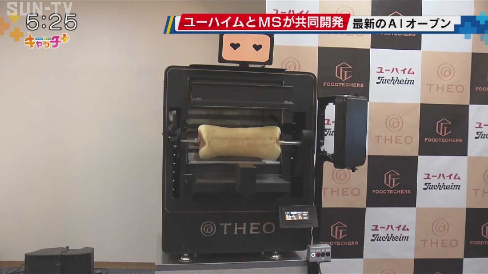 ユーハイムでは焼きたてのバウムクーヘンを多くの人に食べてもらおうと、2016年から約5年かけてバウムクーヘン専用の人工知能オーブン「THEO(テオ)」を開発しました。