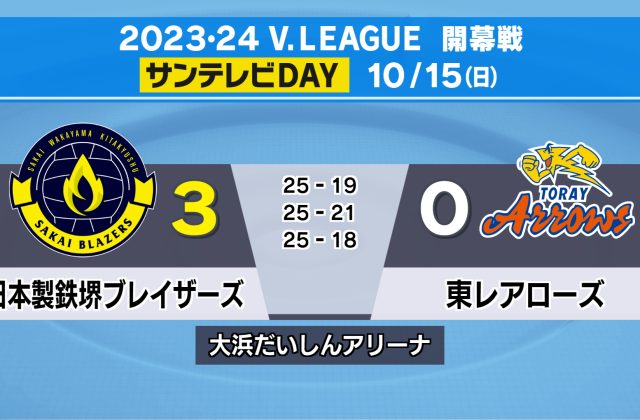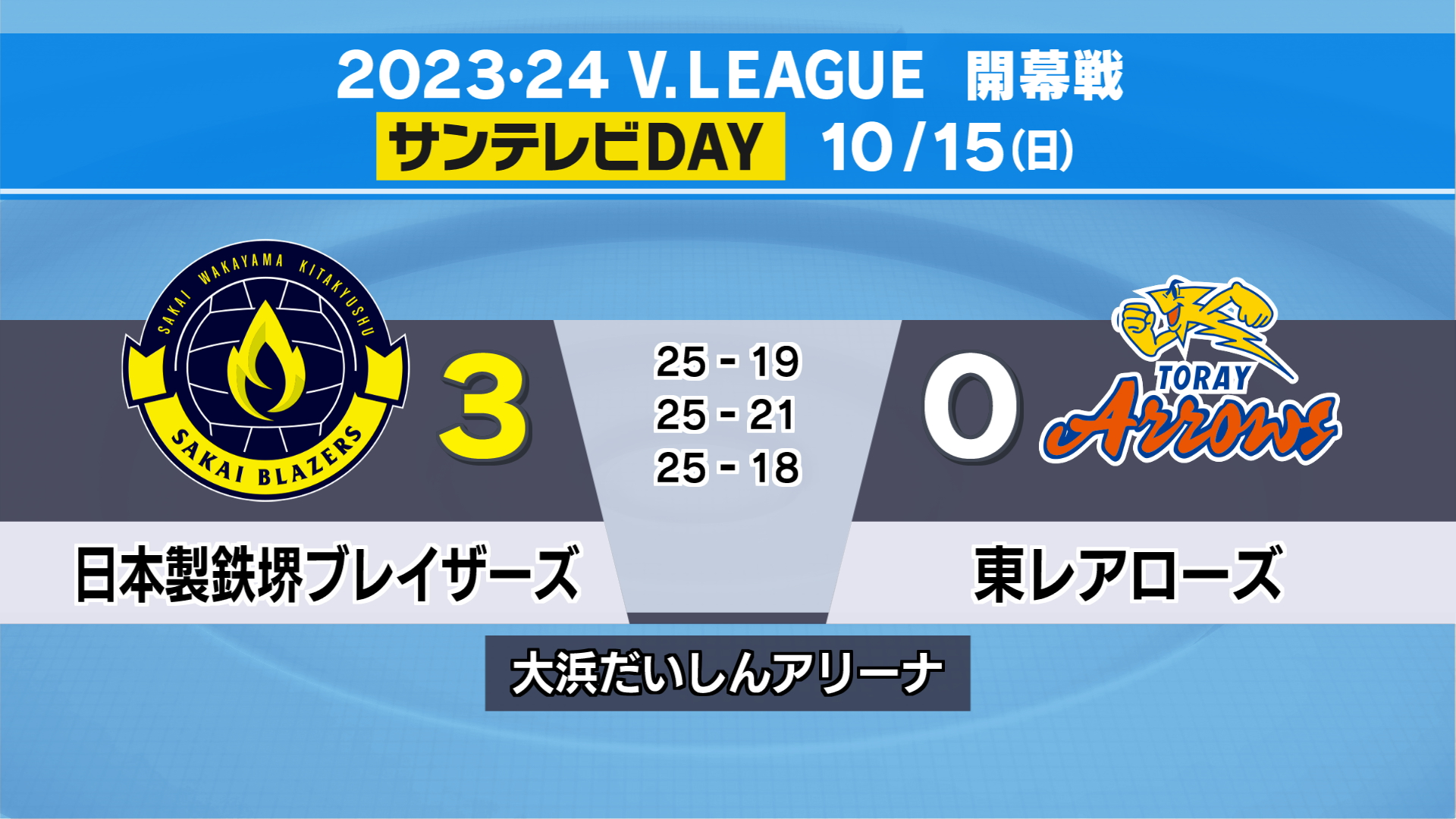 Vリーグ男子1部・日本製鉄堺ブレイザーズが東レを破り開幕2連勝 「サンテレビDAY」