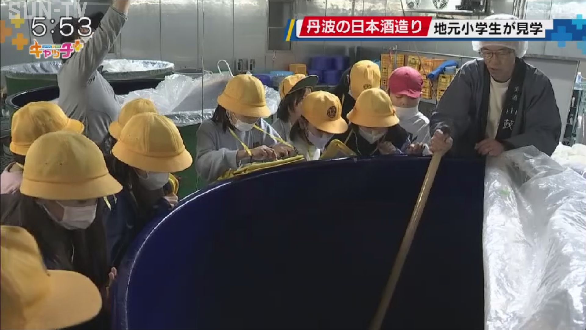 丹波市の酒造会社で19日、地元の小学生たちが日本酒造りの現場を見学しました。