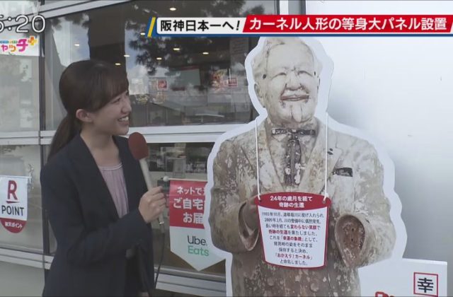 阪神の18年ぶりのセ・リーグ優勝を祝う看板を掲げている、西宮市役所前では、日本シリーズ進出と、38年ぶりの日本一を期待する声が聞かれました。