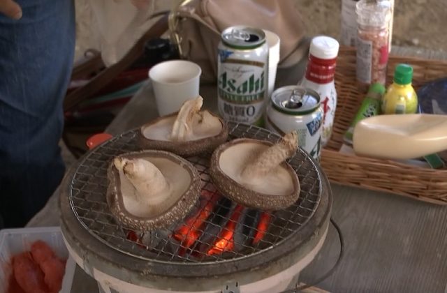 事前に予約すれば七輪で炭火焼きもできるということで、農園では新鮮なシイタケの濃厚な味を楽しむ人の姿もみられました。