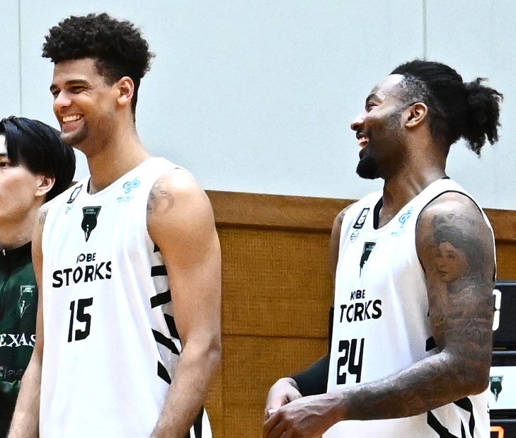 • 神戸ストークス(左から)15トレイ・ポーター、24ジョーダン・キャロライン/©B.LEAGUE